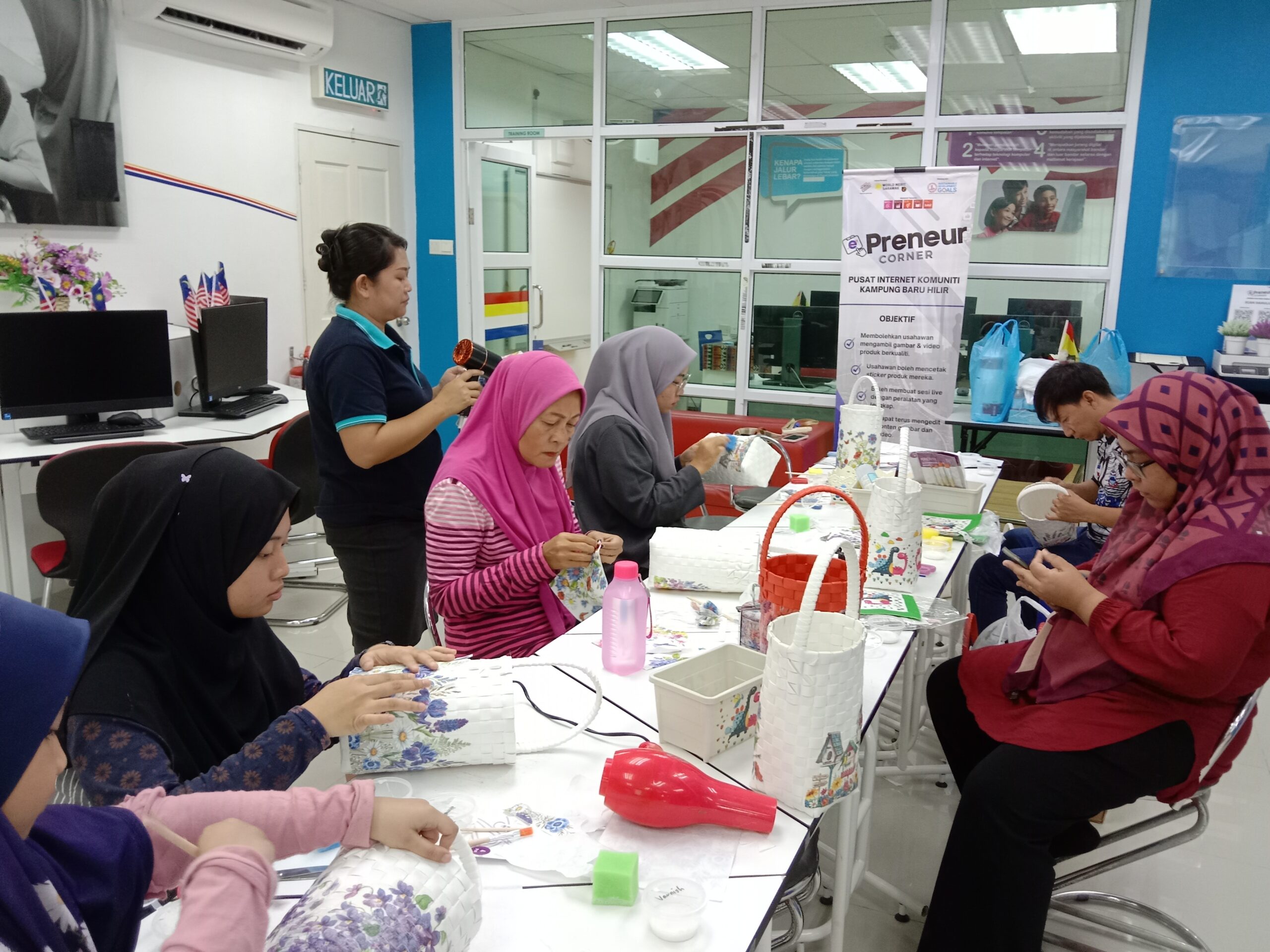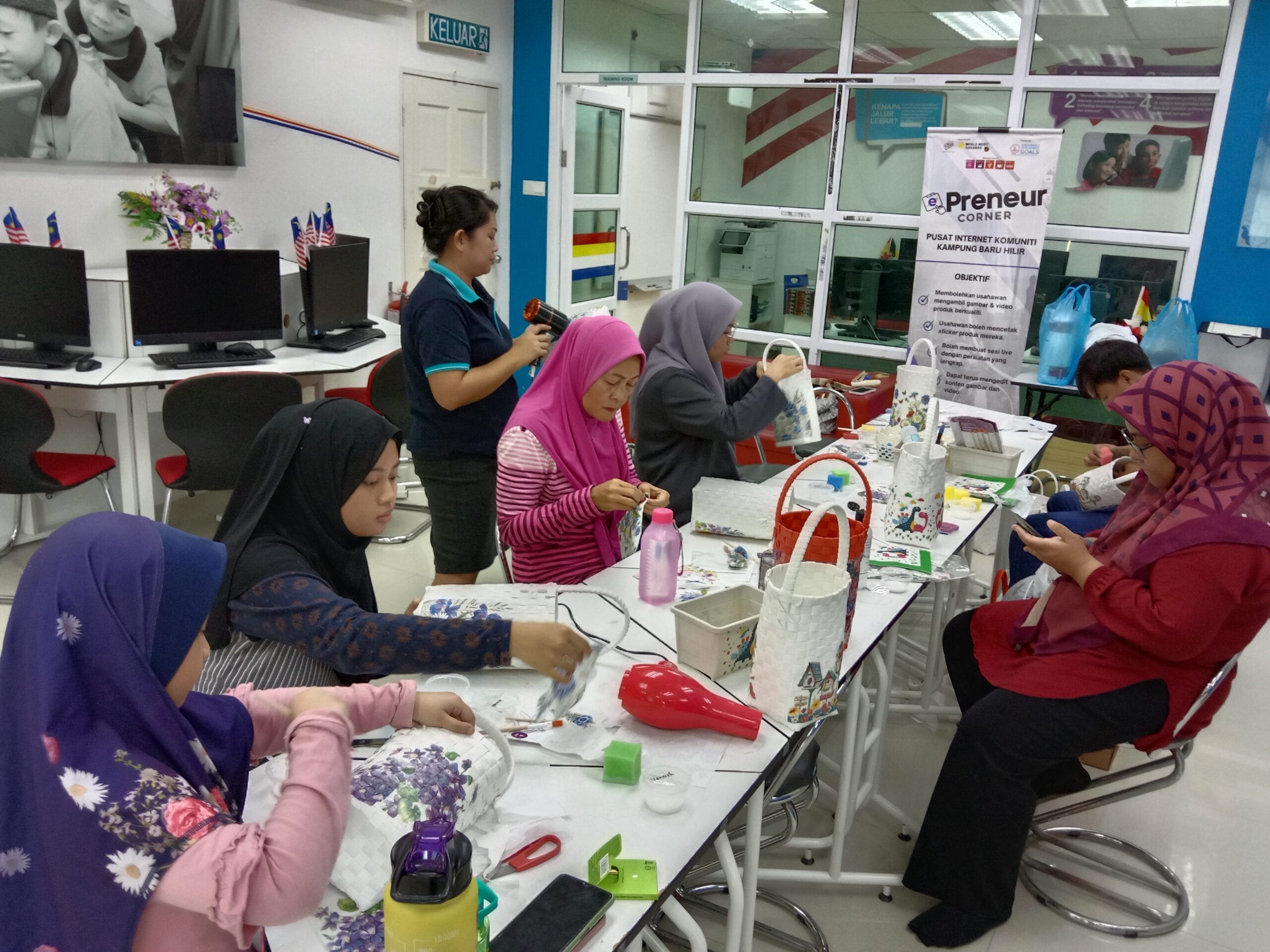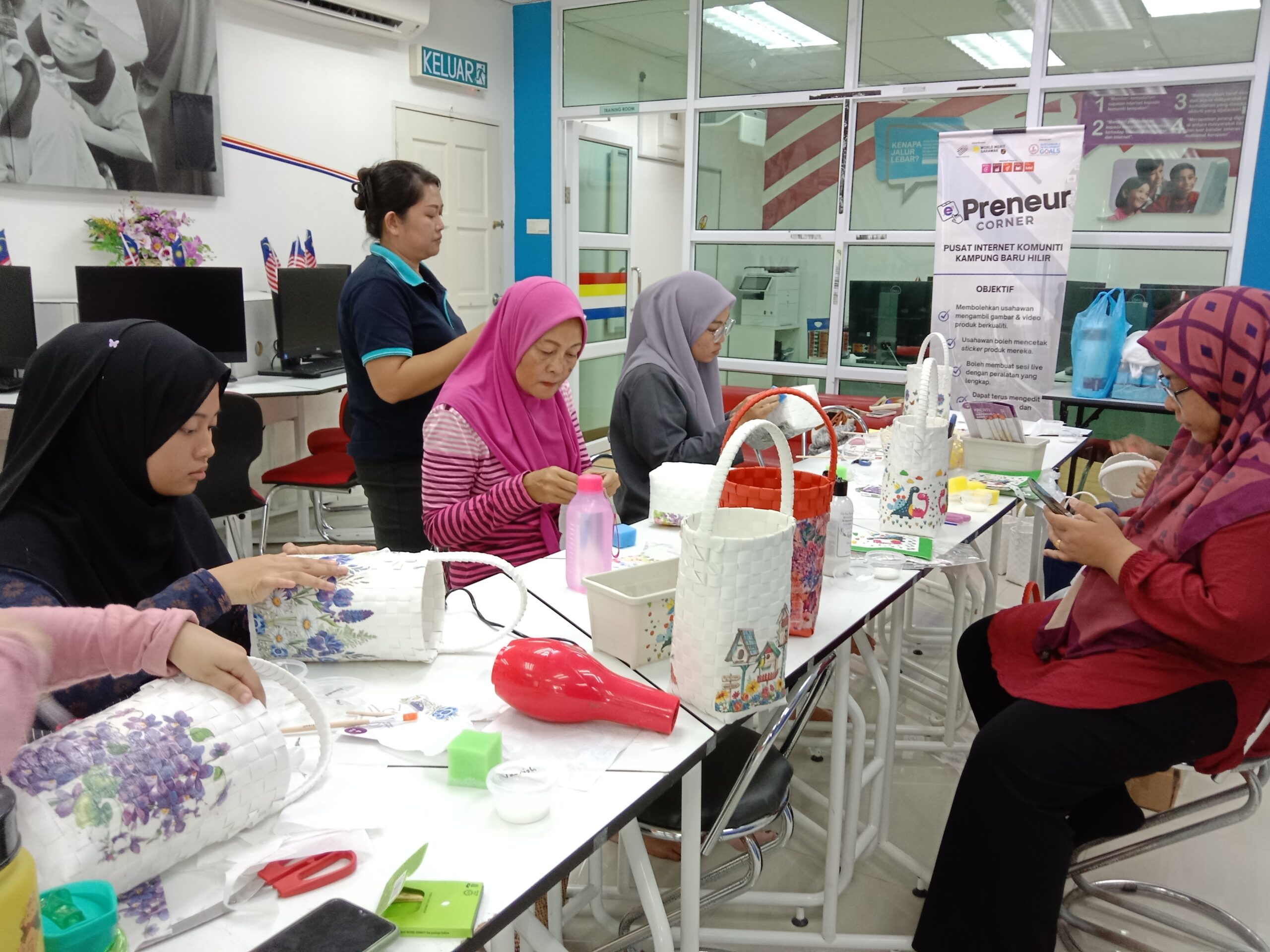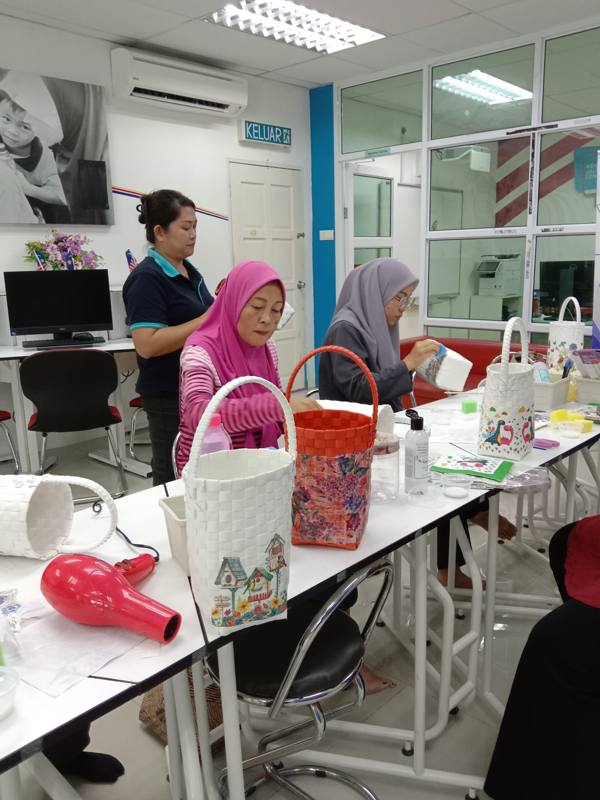 PROGRAM KEUSAHAWANAN – (Kursus Asas Dekopage Bakul Anyaman)